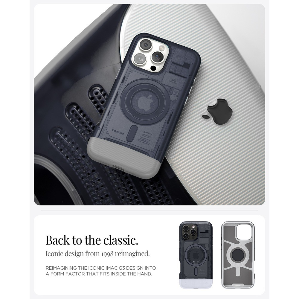 Hej (igen). Som en hyllning till den ikoniska iMac G3 ser den remastrade Classic C1 till att din iPhone alltid gör en comeback. Se tillbaka i tiden med dess halvgenomskinliga retrodesign. Upplev modern teknik med Mag Fit för full MagSafe-kompatibilitet. Vi fixar det.